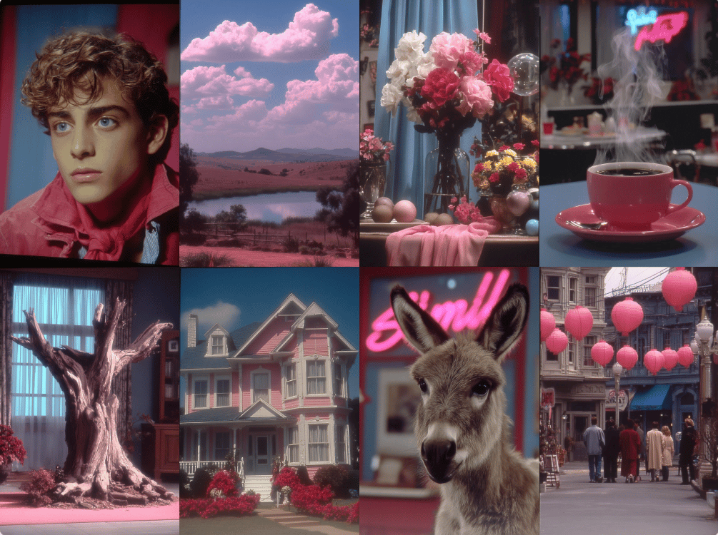 Saturated pinks and blues with neon lighting and high contrast. Very 80s meets vaporwave. Moody, cinematic, slightly surreal. Retro-futuristic color grading.
