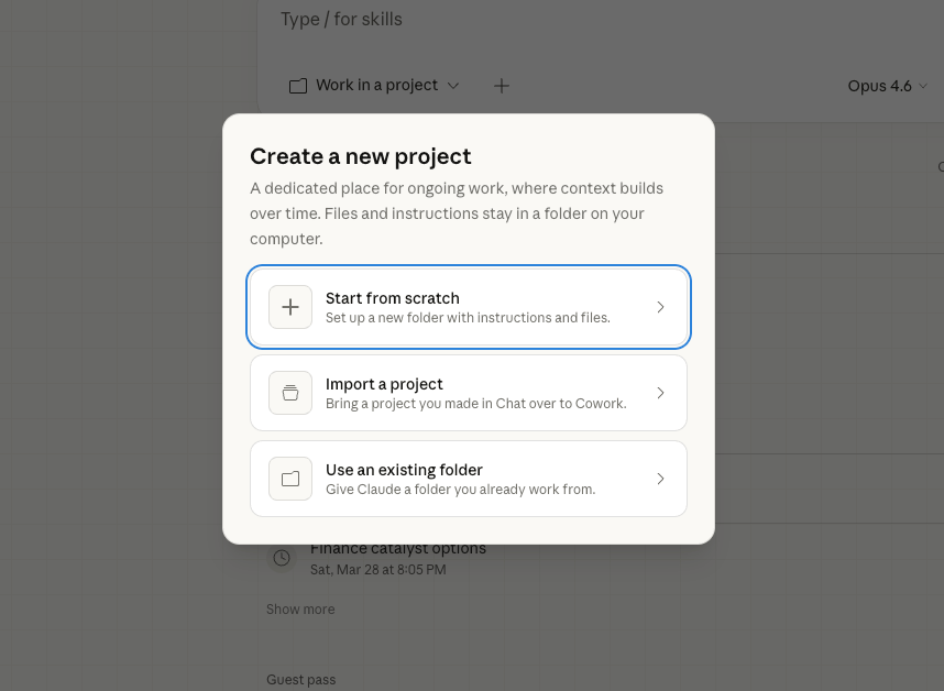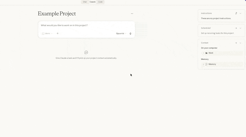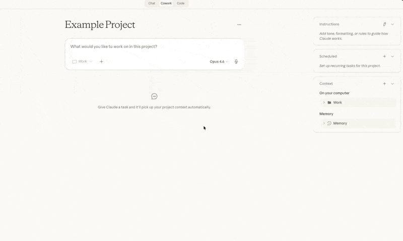 Use an existing folder: Point Cowork at a folder that already lives on your computer. That folder becomes the knowledge hub for that project.